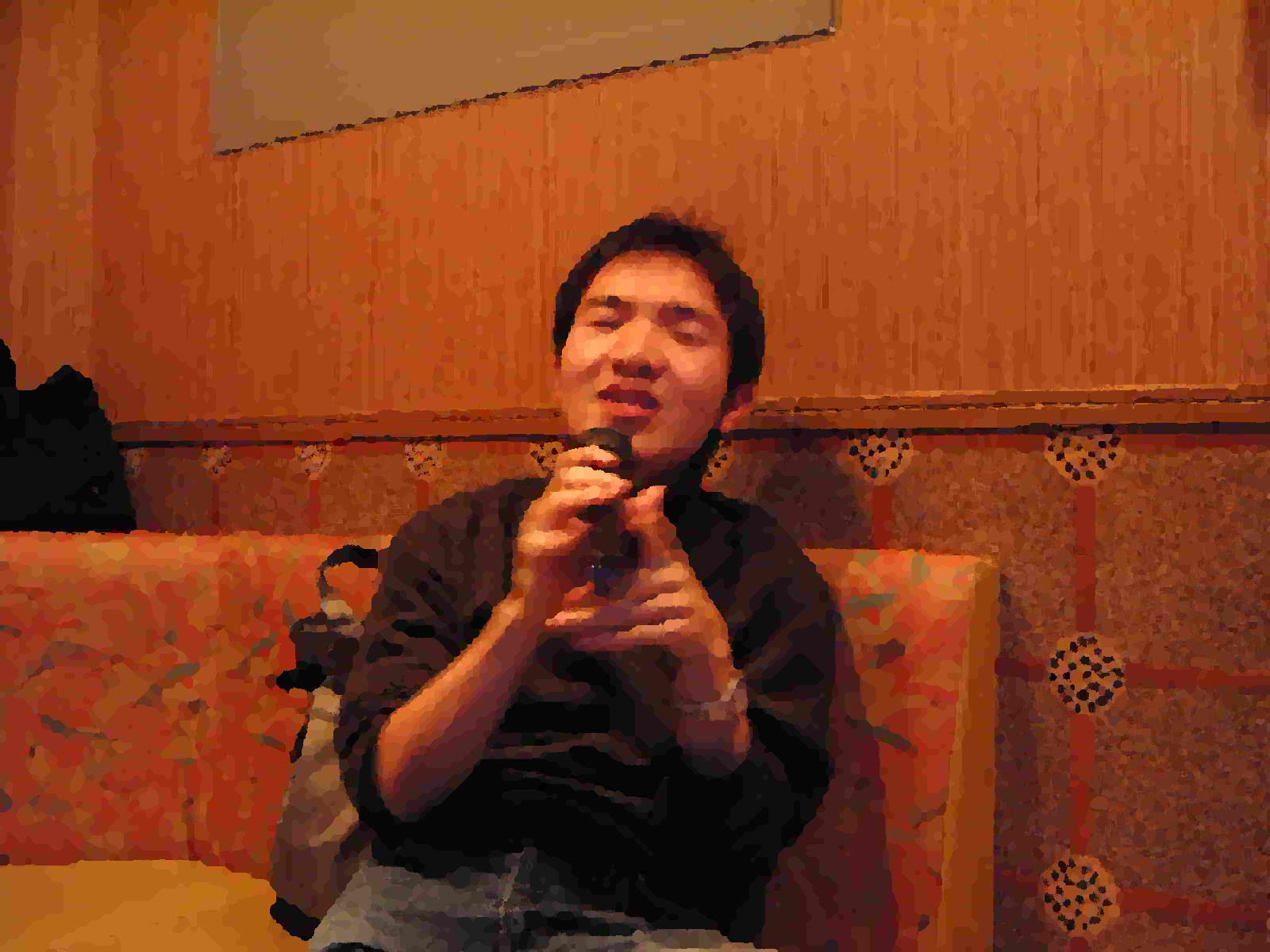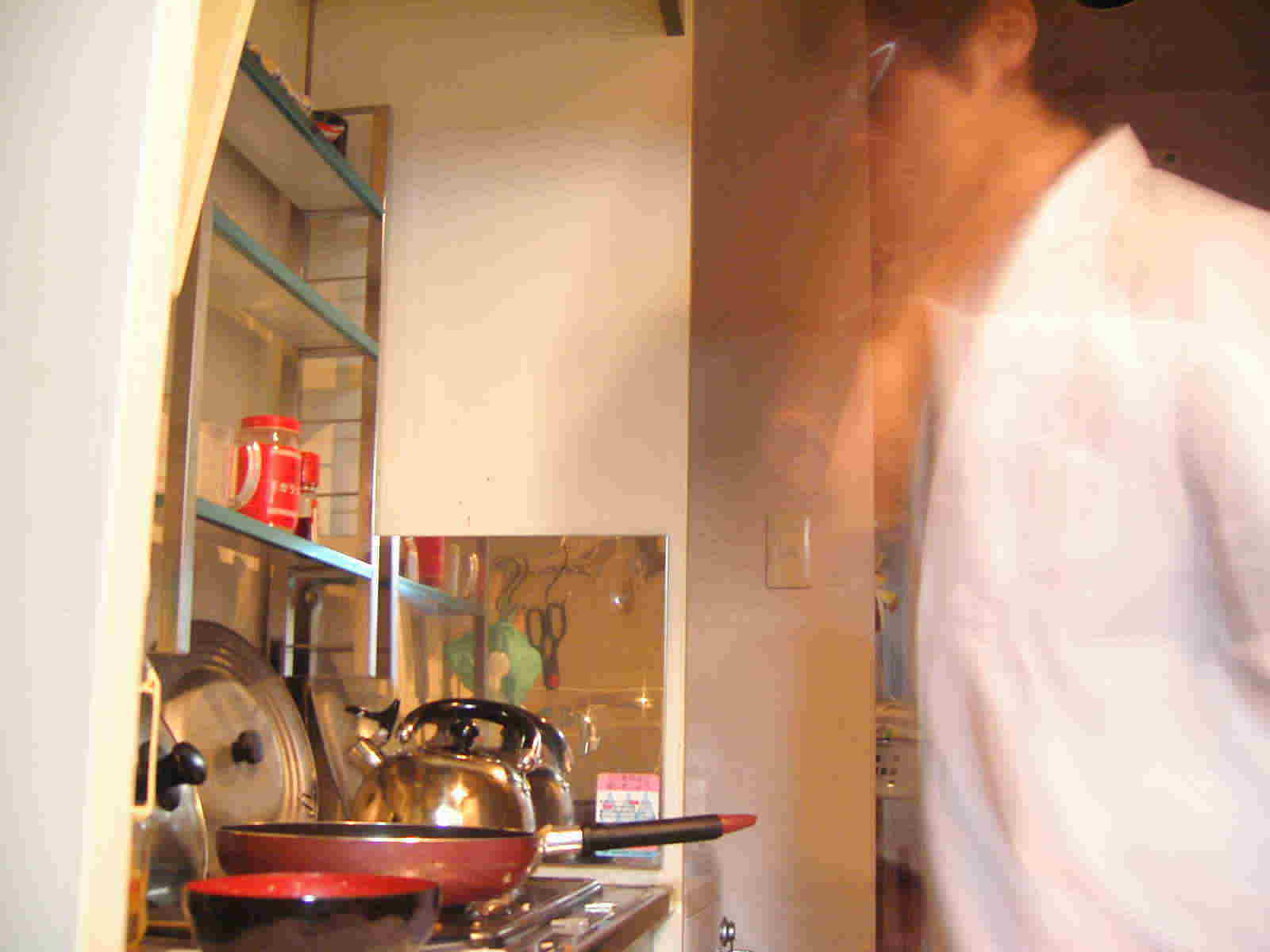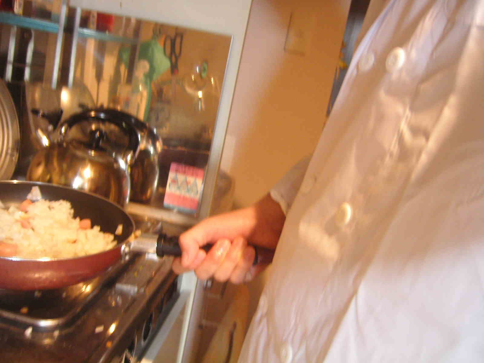 | −江ノ島の猫に会いたい− (2004/1/31記) 昨日、独りでカラオケに行きました。夜11時から朝5時まで。 セルフタイマーで撮影せっかく、購入したマイクスタンドを持っていったのに、マイクがマイクホルダーにはまりません。それでかなりテンションが下がったんだけど、まぁ、白衣とたすきのおかげでずいぶんと盛り上がれたと思います。今回は覚えたてのセックス・マシンガンズの「みかんのうた」を先頭に序盤からやたらと元気な曲を選曲してしまい、深夜1時には疲れ果ててしまいました。やばい、こんなんじゃ朝までもたないよ!と思い、 「は〜い、実は今日はスペシャルゲストを呼んでます!どうぞ〜!」(自分で) 「パチパチ〜」(拍手)(自分で) 「あぁ、どうも」(テレながら)(自分で) ![]() (自分で) 「よ!スペシャルゲスト!」とかなんとか一人で盛り上げて、最後は『さそり座の女』で締めることができました。よかったね。 明日は江ノ島のネコに会いにいこうかなぁと思ってます。 −独りカラオケ−(2004/1/30記) はい、今日は何の日かと言うと、毎月恒例の独りカラオケの日です。いまから歌舞伎町の「歌広場」に行きで朝まで独りで歌ってきます。今回は、ついにお披露目のマイクスタンドゥ!あ〜んど白衣!あ〜んどダイソーで買った「マイクは放しません」たすき(1月12日の記事参照)をアイテムとして持っていきます。あぁ、もう想像するだけでワクワクだよね。うん、独りだけど・・・。だから、そうだ、ショウ君独りでかわいそうだから俺も行ってやろう!とか、あたいもショウ君と一緒にに白衣踊りがやりたい!という人は携帯に連絡ください。あるいは新宿4号歌舞伎町店に来て「サトウショウさん来てますか?」と店員さんに言ってください。待ってます。待ってるよーー!!滋賀にいたっていいよー、三重にいたっていいよー、大阪にいたっていいよー、おーい!待ってるよー。 (2004/1/30記) −スローライフ白衣チャーハン− スローライフが始まり戸惑ってしまう。ただでさえこれまでスローライフだったのに、これ以上スローになってしまうと一体どうなるのか。コタツから出れなくなり、身体が動かなくなり、思考が停止し・・・死?(・ρ゜)ホワァ。 ということで今日はスローライフ死を防止するためにしアグレッシブにチャーハンを作ってみました。先日、大学の購買で白衣を買って以来ずっと着ているのでその様子も。